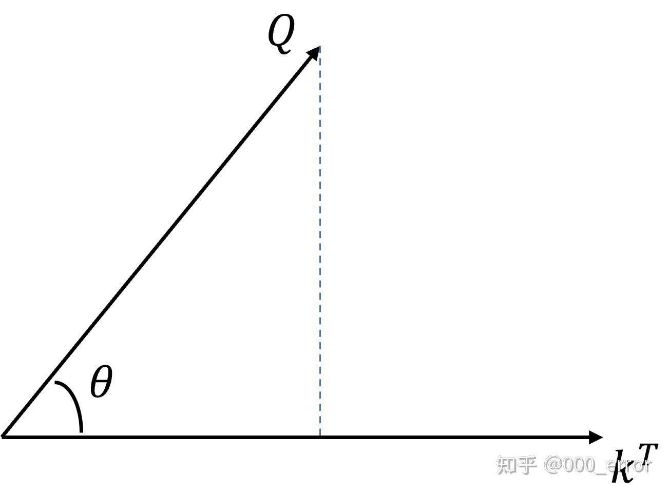 我们先从 QKT 看起,从几何角度看,点积是两个向量的长度与它们夹角余弦的积。如果两向量夹角为90°,那么结果为0,代表两个向量线性无关。如果两个向量夹角越小,两向量在方向上相关性也越强,结果也越大。点积反映了两个向量在方向上的相似度,结果越大越相似。