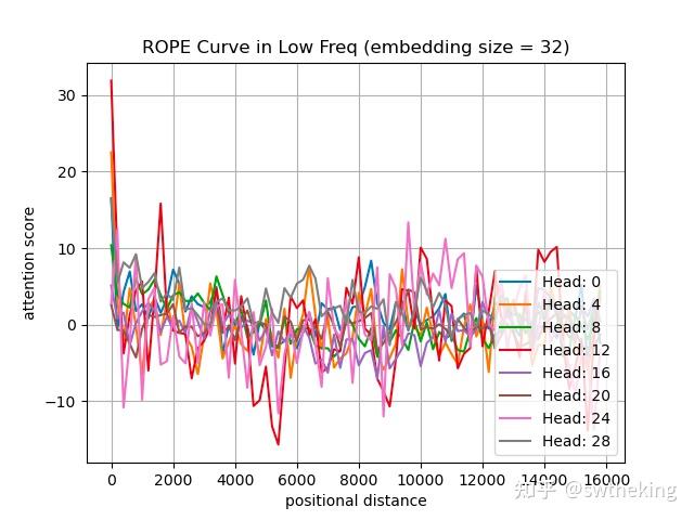 在低频32维度,attention score变化如下: