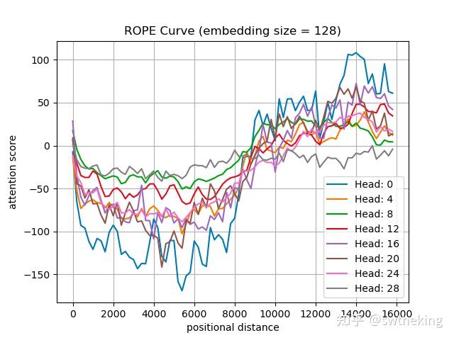 如果只做到远程衰减,最差可以得到一个接近Slide window的做法: 也就是我只关注最近n个tokens,其余变为0。这种做法有个问题,那就是不能召回远端相关的tokens(也就是检索任务会不好)。那么除了远程衰减以外,position embedding需要保证attention score远程震荡为0,而不一直为0。这样就可以保证能召回非常相关的tokens,这也是RoPE的优点之一。